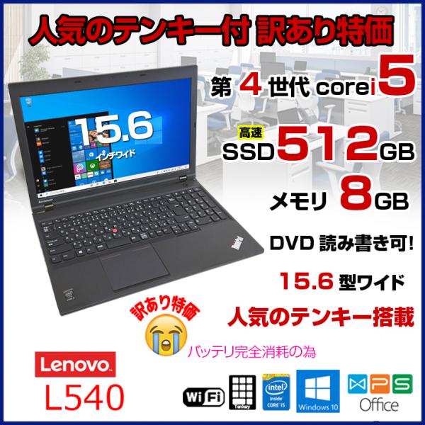 【中古パソコン】Lenovo L540 中古 ノート Office Win10 第四世代 テンキー [core i5 4210M 2.6GHz 8G SSD512GB マルチ 15.6型 無線] :訳あり