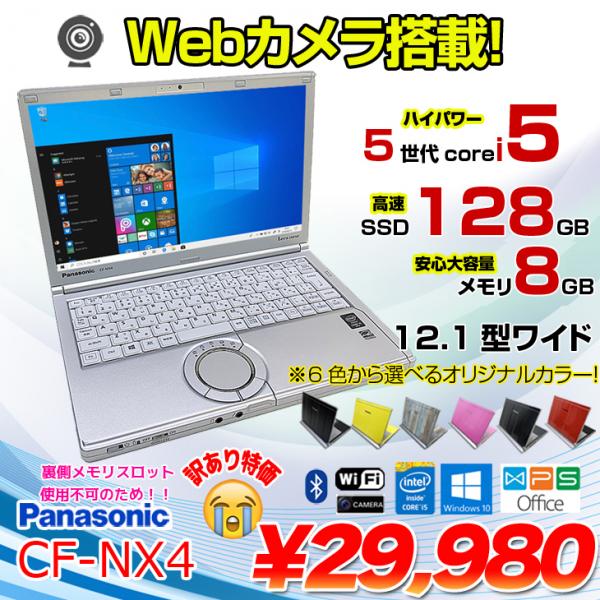 【中古パソコン】Panasonic CF-NX4 選べるカラー 中古 ノート Office Win10 第5世代 [core i5 5300U 2.3GHz 8GB SSD128GB カメラ 無線 BT 12.1型 ] :訳あり