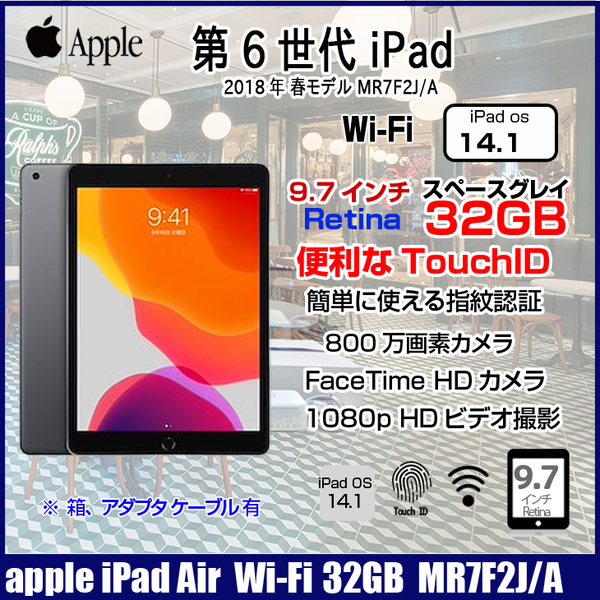 【中古iPad】Apple iPod 第6世代 MR7F2J/A Wi-Fi 2018 32GB A1893[ A10 32GB(SSD) 9.7インチ iPadOS 14.1 スペースグレイ ] :美品