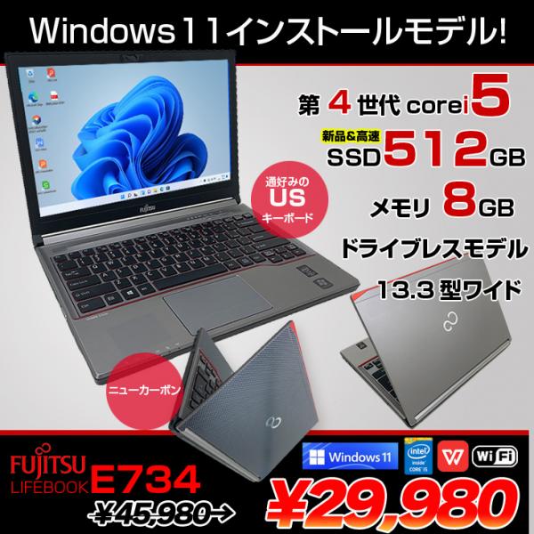 【中古パソコン】富士通 LIFEBOOK E734 中古 ノート 選べるカラー Office Win11 第4世代 [Core i5 4310M メモリ8GB SSD512GB 無線 USキー 13.3型] :良品sub_image1