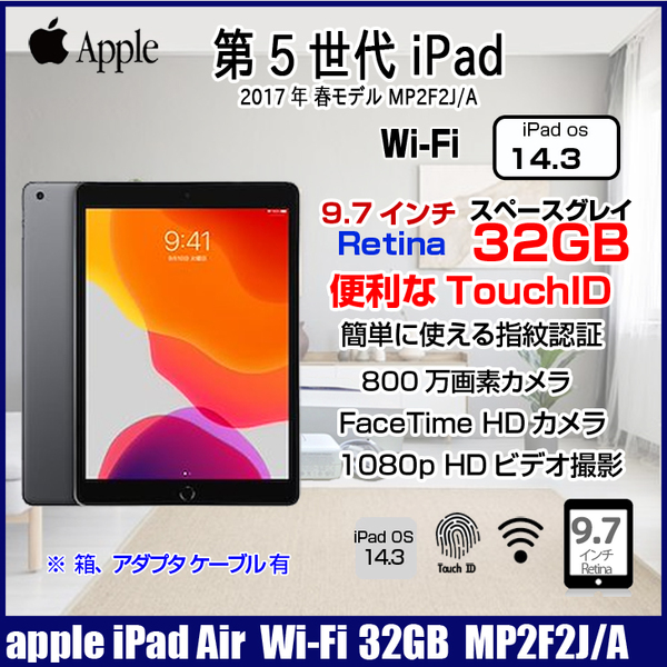 【中古iPad】Apple iPod 第5世代 MP2F2J/A Wi-Fi 2017 32GB A1822[ A9 32GB(SSD) 9.7インチ iPadOS 14.3 スペースグレイ ] :美品