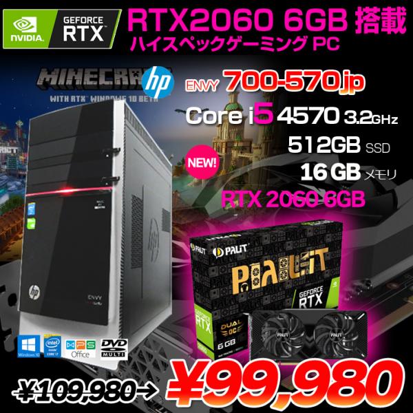 【中古パソコン】HP 700-570jp ハイスペックゲーミング eスポーツ RTX2060 6GB搭載 Win10 Office 第4世代 [Core i5 4570 3.2GHz メモリ16GB 高速起動SSD512GB ] :良品