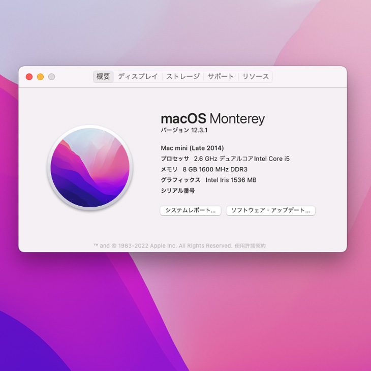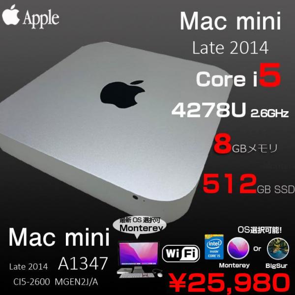 【中古パソコン】Apple Mac mini MGEN2J/A Late 2014 A1347 小型デスクトップ 選べるOS Monterey or Bigsur [Corei5 4278U 2.6GHz SSD512GB 8GB 無線 BT]:良品