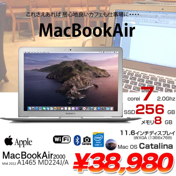 【中古パソコン】Apple Macbook Air MD224J/A カメラ [core i7 3667U 2GHz 8G SSD 256GB 無線 BT 11.6インチ macOS Catalina 10.15.7] :良品