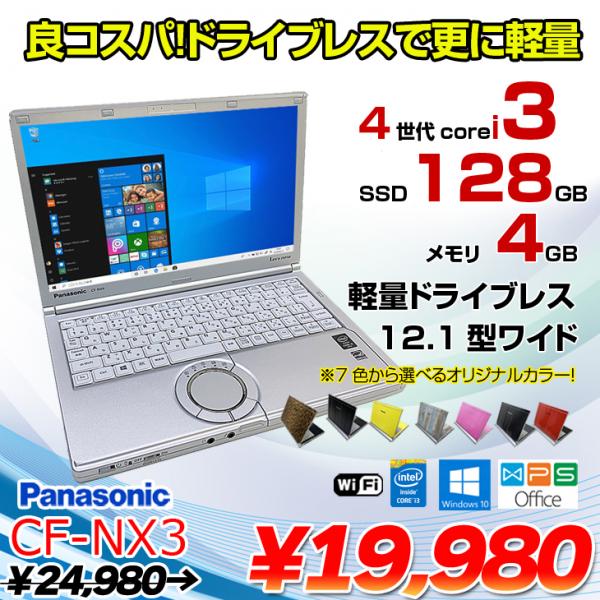 【中古パソコン】Panasonic CF-NX3 中古 ノート 選べるカラー Office Win10 第4世代 [Core i3 4010U メモリ4GB SSD128GB 無線 12.1型 ] :アウトレット