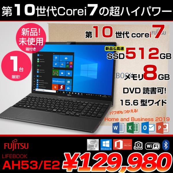 富士通 AH53/E2 新品未使用 ノート MicrosoftOffic Home&Business2019 Win10 テンキー カメラ フルHD [corei7 10510U 8GB SSD512GB マルチ BT 無線 15.6型 ] :新品