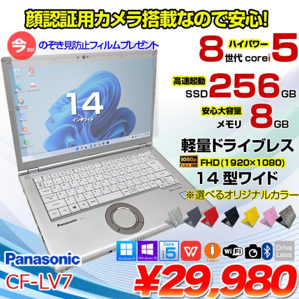 【中古パソコン】Panasonic CF-LV7 選べるカラー!中古 ノート Office 選べる Win11 or Win10 第8世代 TYPE-C [Core i5 8350U 8G 512G 無線 カメラ フルHD 14型]:良品